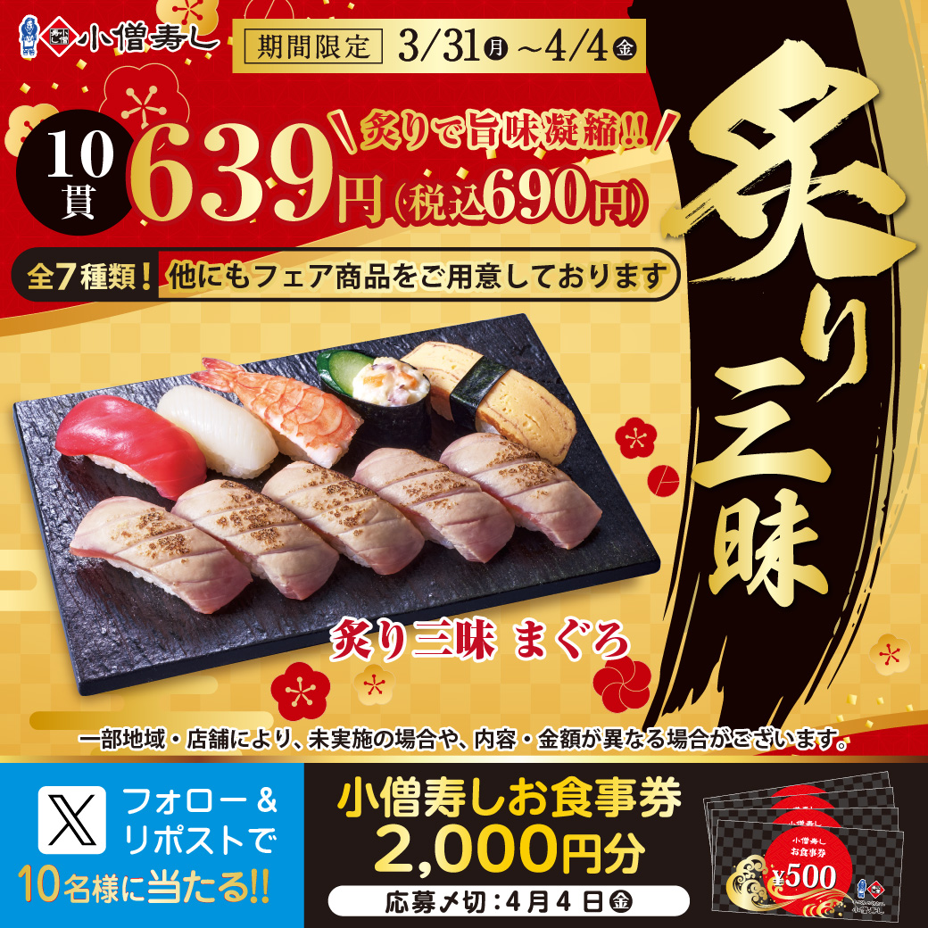 - 小僧寿し 炙り三昧まぐろ&お食事券プレゼントキャンペーン