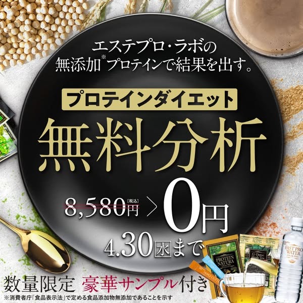 無添加プロテインダイエット無料分析キャンペーンのバナー情報