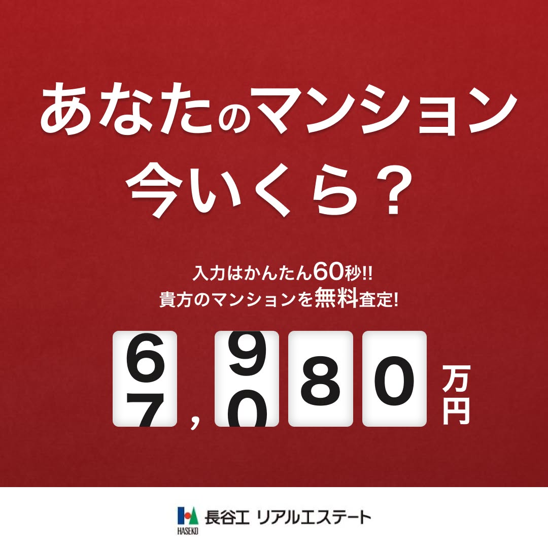 白い大きな文字で書かれた「あなたのマンション 今いくら?」というキャッチコピーが目を引き、視線を自然に中央に誘導します。