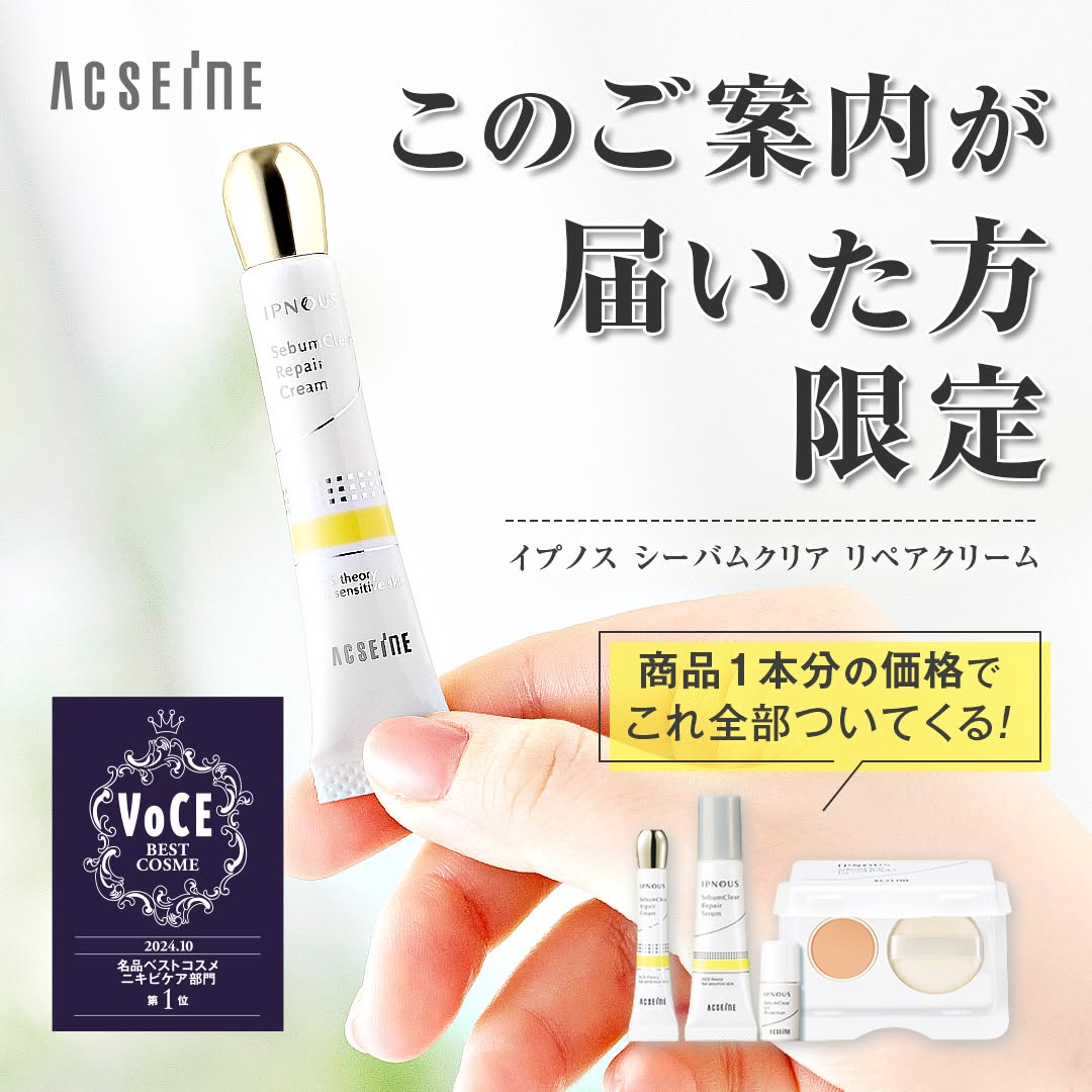 - このバナーは非常にシンプルでありながら視覚的に引きつけられるデザインです。ホワイトとイエローの組み合わせは清潔感を与え、化粧品の特長である「リペア」感を強調しています。製品が前面に出ており、手に持っている姿が製品に対する信頼感を与えます。背景がぼんやりとした淡い色合いで、余計な情報を省いて製品の重要性が際立っています。「商品1本分の価格でこれ全部ついてくる!」という特典が視覚的にわかりやすく配置され、購入を促すインパクトを持っています。