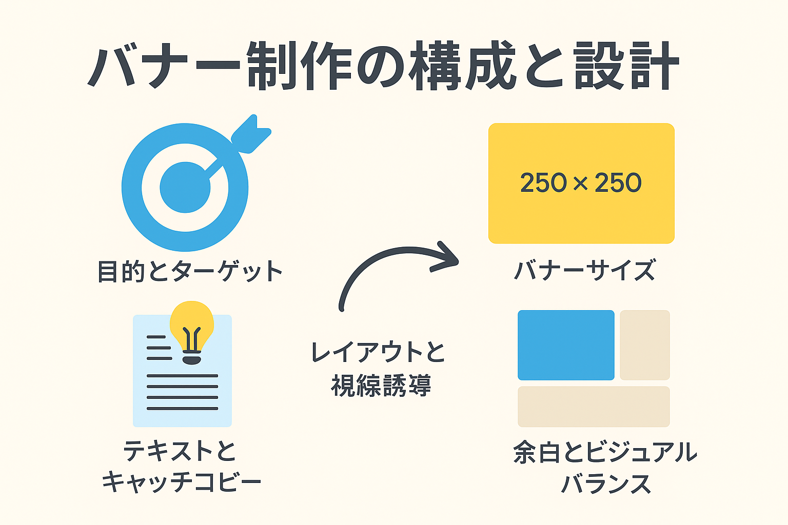 Canvaで魅力的なバナーを作成するには、デザインそのものよりも先に「何を伝えるか」を明確にする構成設計が鍵を握ります。効果的な情報の伝え方、視線誘導の配置、印象に残るキャッチコピーなど、設計段階での工夫によって成果を大きく左右します。