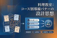 料理教室を検討しているユーザーにとって、「どのコースを選べばいいのか分からない」「申込までの流れが複雑で迷ってしまう」といった導線上の分かりにくさは、大きな離脱要因になります。特に料理教室では、初心者向け・経験者向け・目 […]